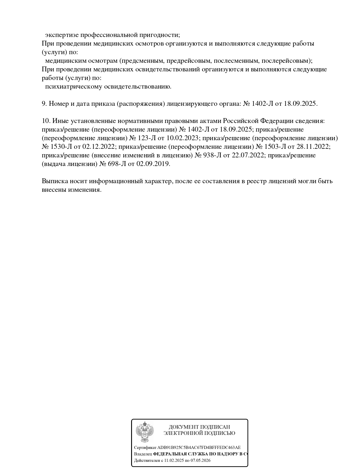 Медицинская лицензия с 1996 года